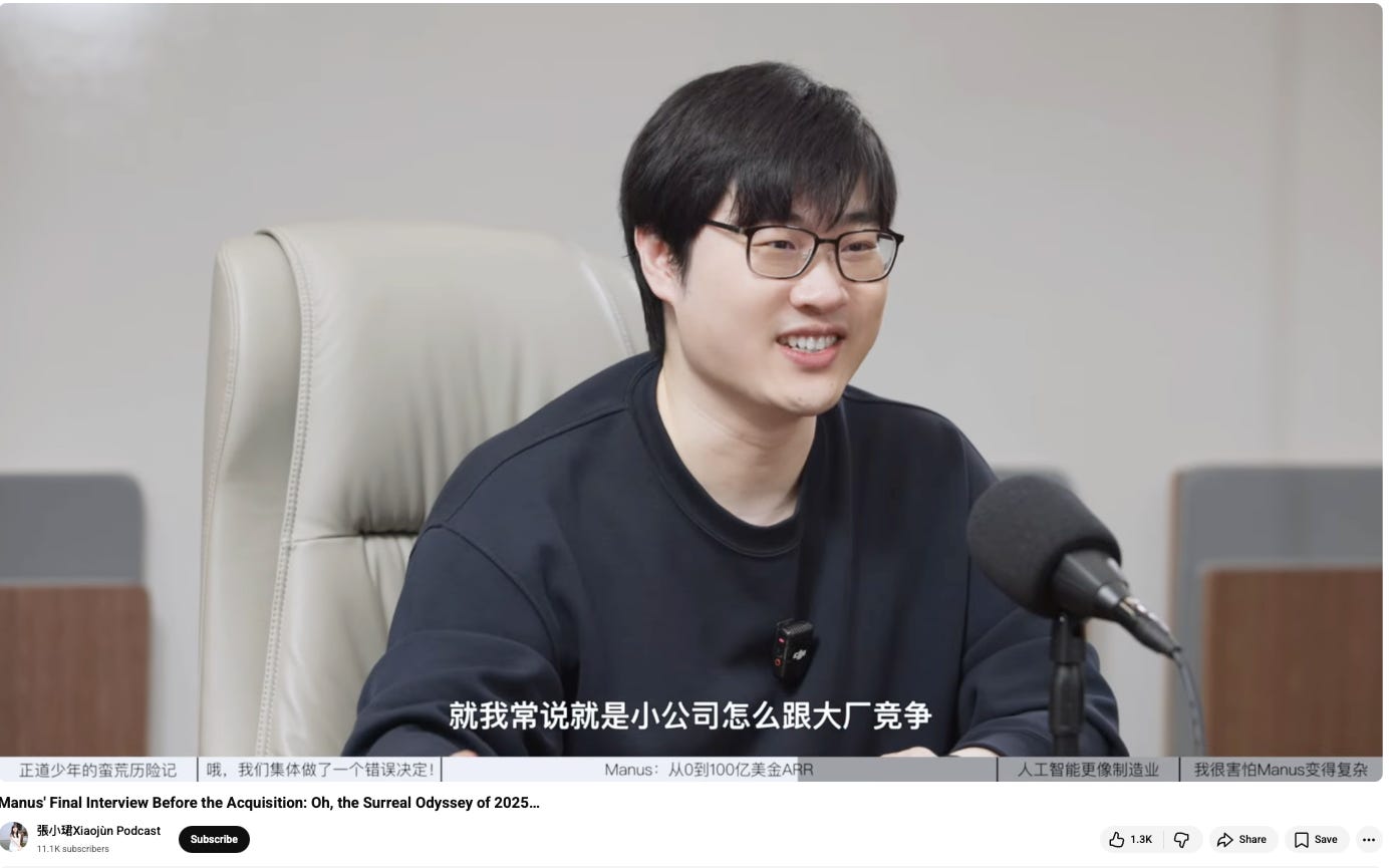 My biggest takeaway from watching the interview is how Manus approaches PR and comms with a long-term view. From the initial launch video—which was scripted by the co-founders not outsourced— the company was founder-led and designed for long-tail relationship value in the tech community on both sides of the Pacific.