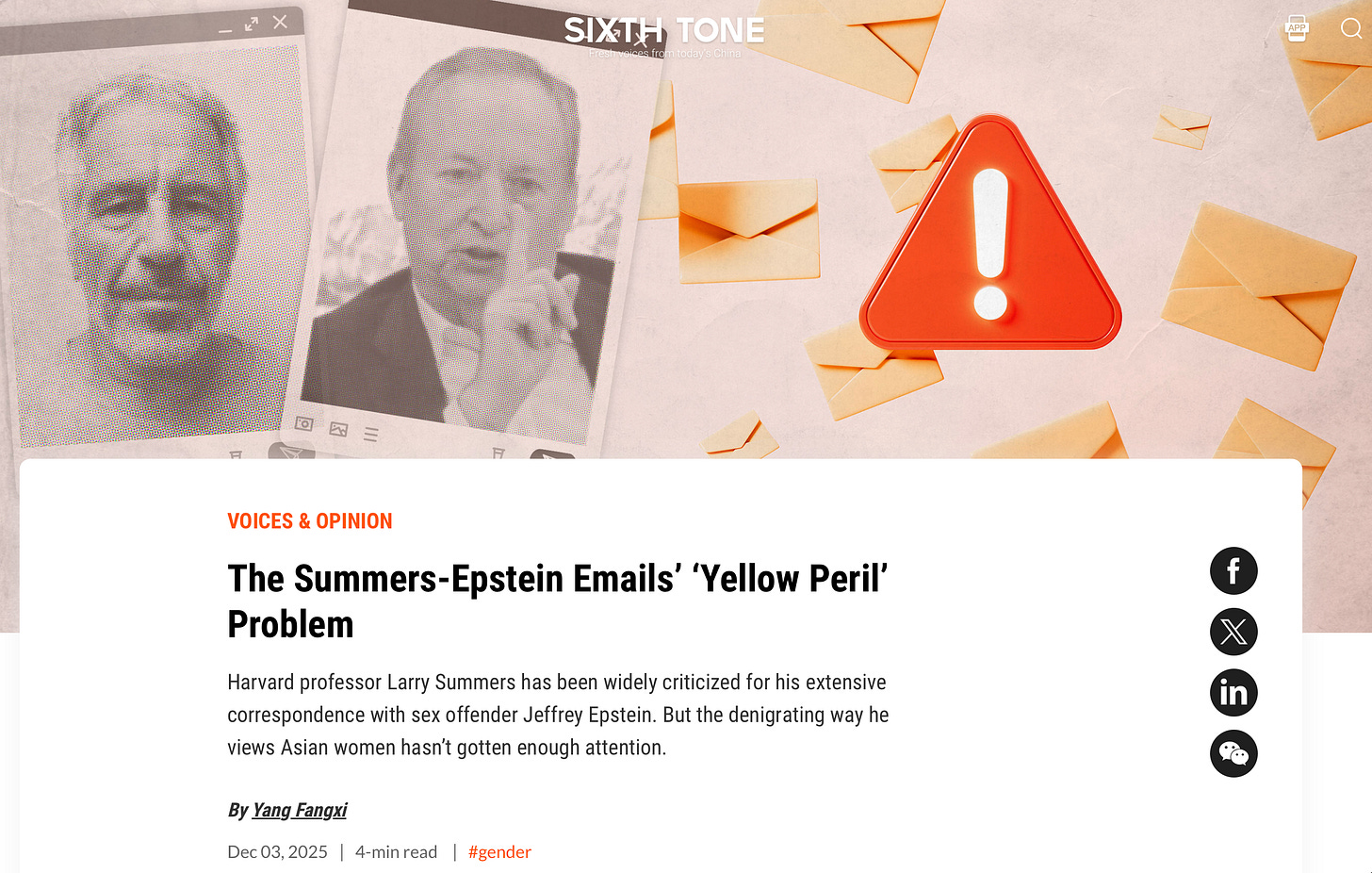 The Harvard Crimson’s story on Larry Summers and Jeffrey Epstein exposes how power, geopolitics, and gender still really work in 2025. In newly released emails and texts, Summers turns to Epstein as his “wing man” while pursuing a woman he repeatedly calls his “mentee”—a woman who appears to be the Chinese economist Keyu Jin.